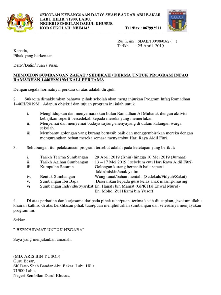 Ustadz Nafi Zainudin Lc MHI. Salah satu caranya adalah dengan memberikan beasiswa kepada siswa atau mahasiswa tertentu. Surat ini digunakan untuk memohon bantuan berupa dana zakat infaq dan shodaqoh.